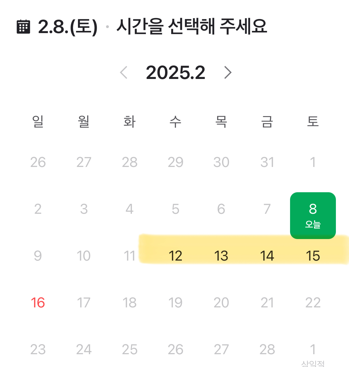 10, 11일은 마감되었으니, 12일~15일 예약이 가능합니다.