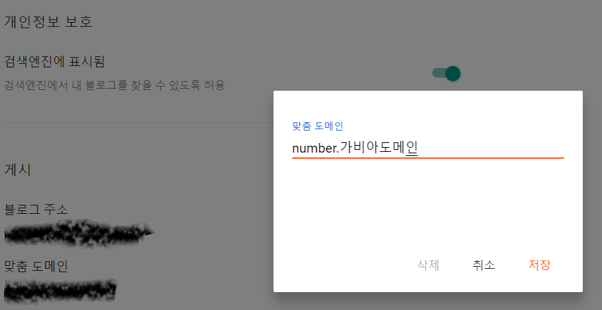 위의 작업이 완료 된 후 저장을 눌렀을 경우 제대로 맞춤 도메인 설정이 된다면 세팅이 완료 됩니다.