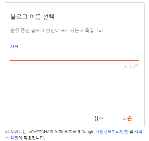 블로그 이름을 정하고, 블로그 URL을 원하는 주소로 작성합니다.