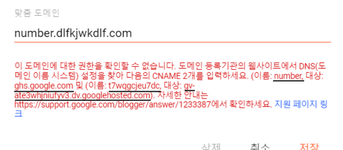 도메인을 적었을때 오류가 생성된다면, 아래와 같은 방법으로 설정을 해주시면 됩니다.