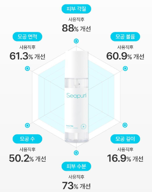 씨퓨리 바디미스트는 모공 각화증 즉 오돌토돌한 닭살 피부를 개선시켜주는 효과를 가지고 있습니다. 강남 피부과에 공식 입점된 상품으로 모공개선 효과, 피부각질 개선, 피부 수분 개선 효과가 입증된 상품입니다. 사용 1회 만에 각질 88% 개선되었고, 모공 61.3%가 개선되는 효과가 있습니다.