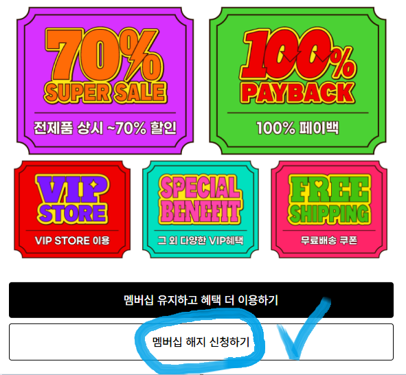 - 우측 하단에 작은 글씨로 '멤버십 해지하기' 버튼을 클릭 하세요