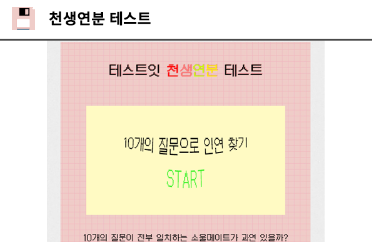 소개팅에서 10개의 질문으로 인연을 찾는 천생연분 테스트, 첫인상 성격 테스트 등 어색한 분위기를 전환시켜볼 만한 테스트를 소개합니다.