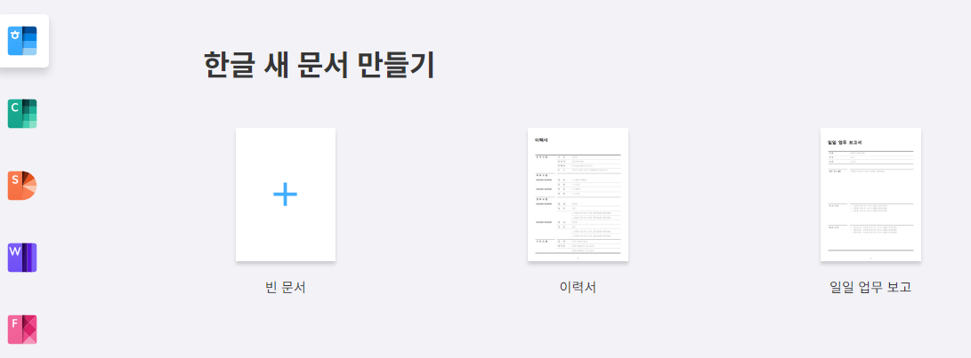 한컴 독스 홈페이지에서는 회원 가입 후 한셀, 한쇼, 한 워드, 한컴 오피스에서 사용하는 프로그램을 무료로 사용할 수 있습니다.