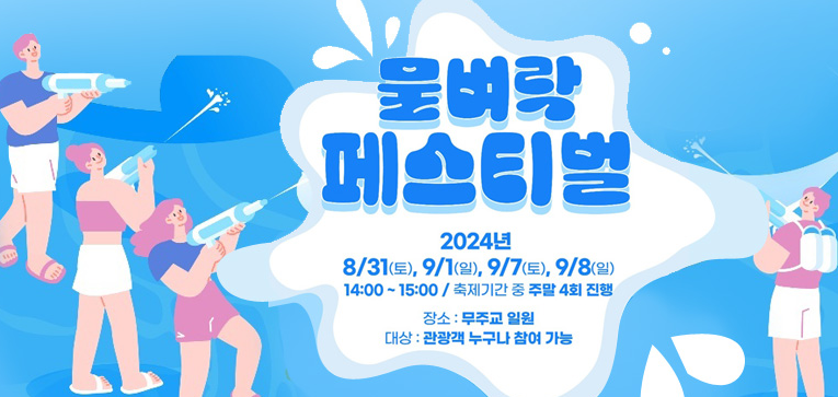 2024년은 무주방문의 해로 지정되어, 생태문화축제, 생태환경축제 등 무료로 즐기실 수 있는 축제로, 축제 정보, 숙박비 지원 받는방법을 함께 소개해 드리니, 가족과 부모님과 함께 축제를 즐겨보시기 바랍니다.